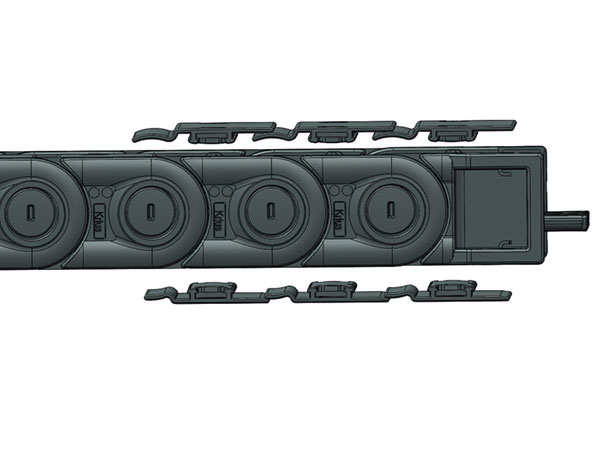 To make wire installation more convenient, the cross bar of the ZF/ZQ cable chain should be quickly opened on either the interior or exterior. Parts of the cross bars prevent dust and debris from coming into contact with the loads.